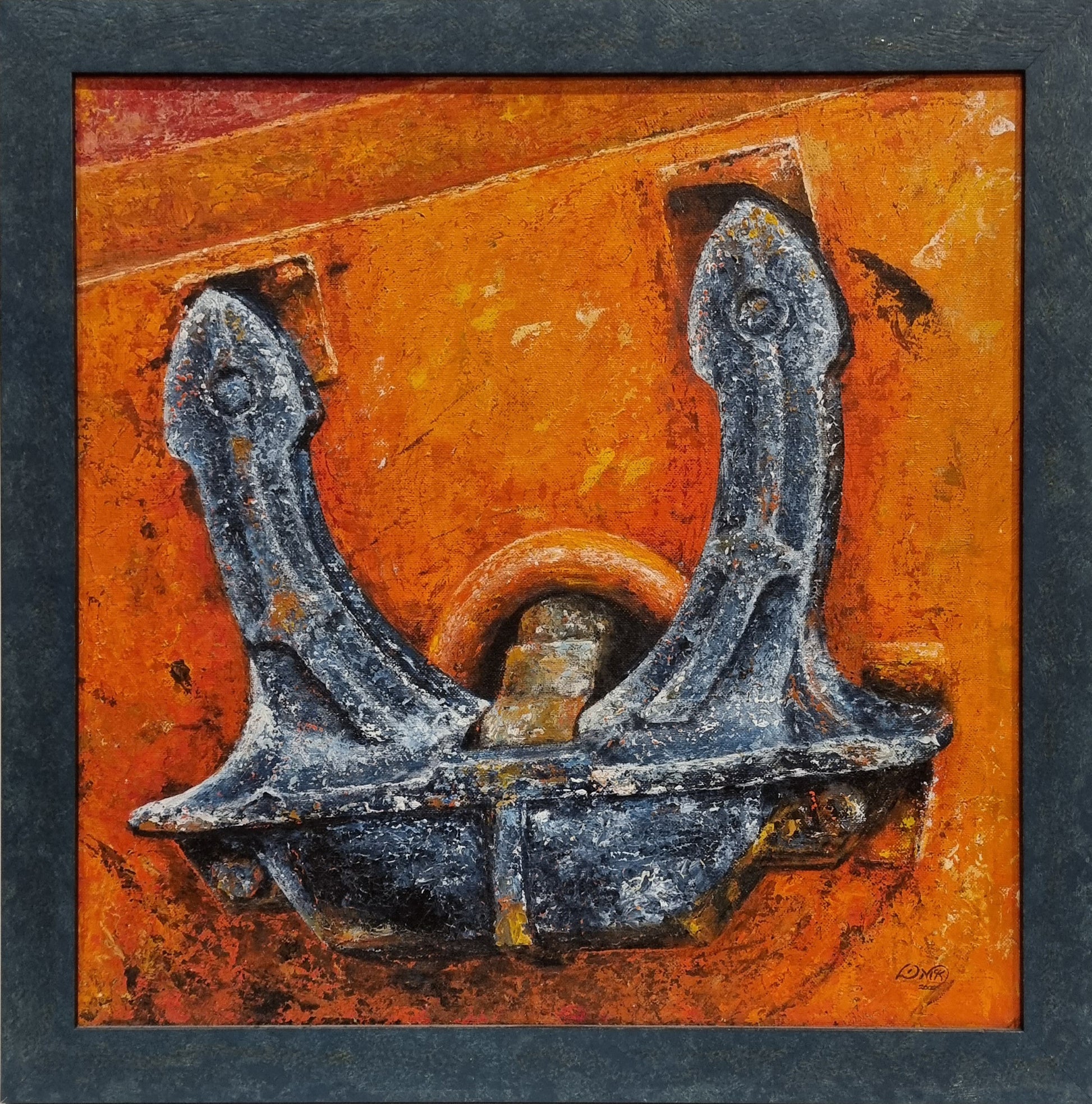 Original abstract painting of a supply ship anchor.