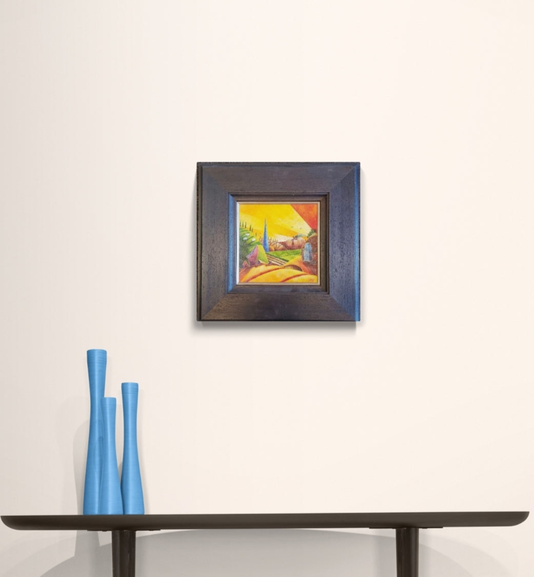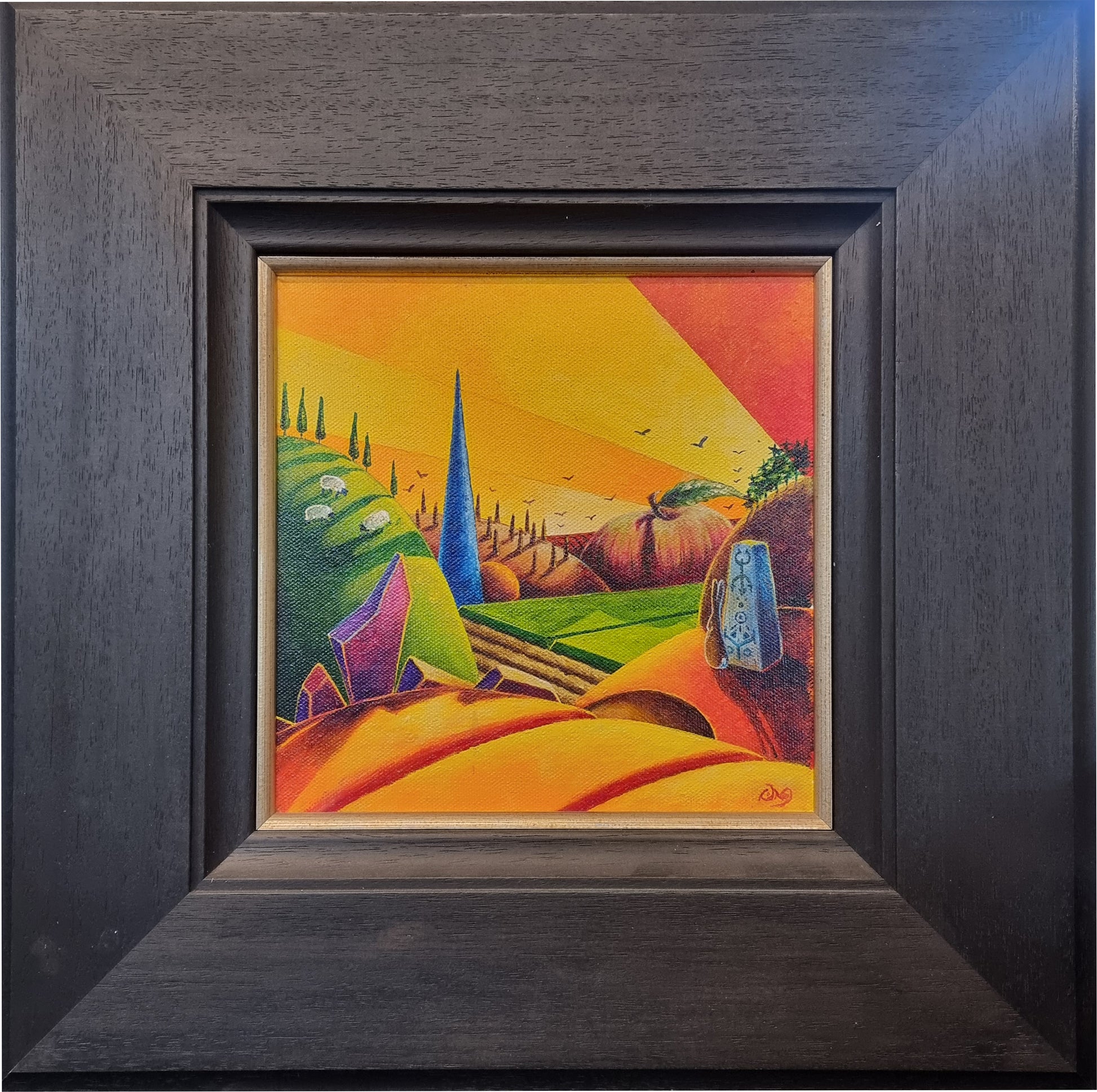 A bright and uplifting, surreal landscape painting. This little work packs a lot of punch.
